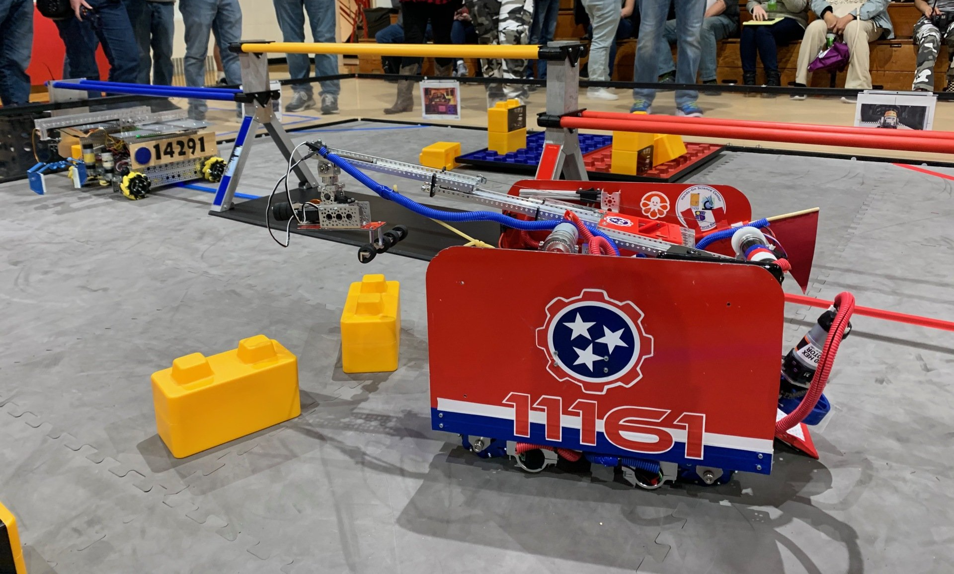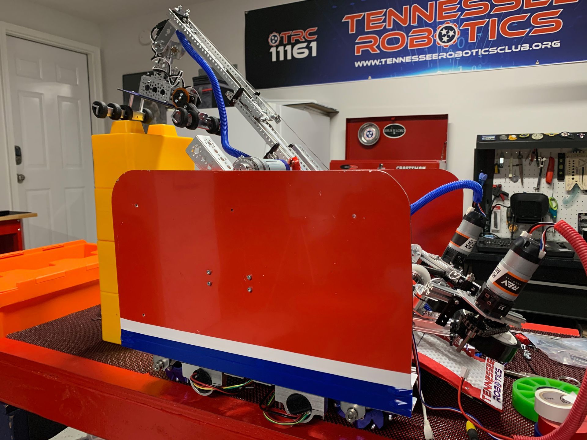 Big Red was designed, developed, and constructed in 2019. He has an omnidirectional, four-wheel drive mechanum drivetrain with a robotic arm and grabber system modeled after a WWII artillery gun. His driver-control and autonomous programming was coded by Ben Puckett and is over 20 feet long when printed out and laid end to end on the floor:)